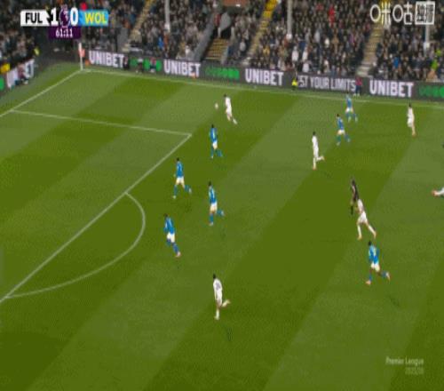 第9分钟,希门尼斯直塞,塞塞尼翁插上破门,富勒姆1-0狼队