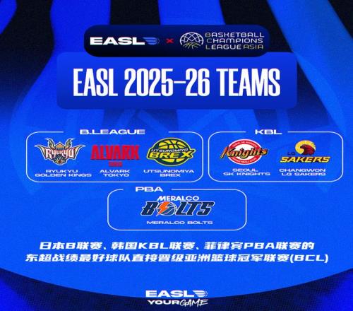 北京时间12月15日,EASL(东亚超级联赛,简称:东超)官方宣布:EASL成为BCL(亚洲篮球冠军联赛)亚洲区的官方资格赛,日本B联赛、韩国KBL联赛、菲律宾PBA联赛中在东超排名最高的球队自动获得BCL亚冠的参赛资格。